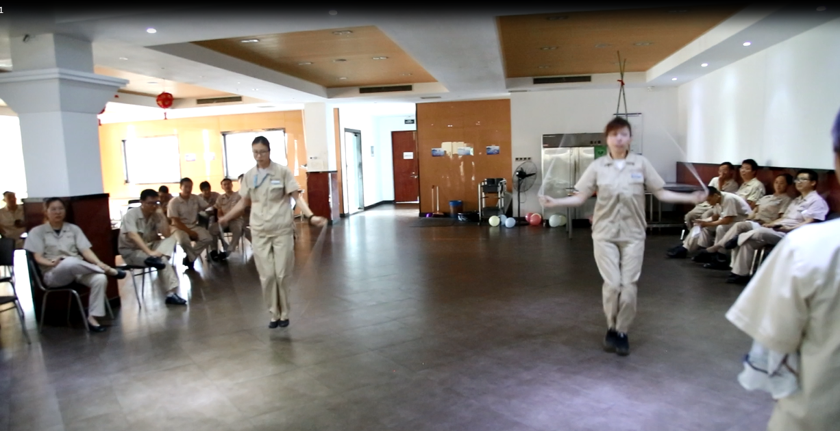 緊張的消防演練結束,到了大家期盼已久的趣味運動會。主持人將所有人隨機分成四組角逐,游戲采用積分制,分五輪進行,積分第一的隊伍獲得“夏日清涼禮品”一份。規則介紹結束,隱藏在各隊的“武林高手”躍躍欲試,向桂冠發起沖擊。