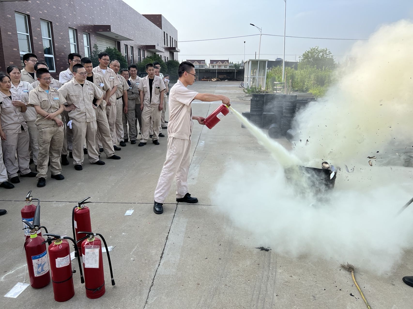 夏季天氣炎熱且干燥,電氣設備線路超負荷運轉、發生短路、生產設備升溫等。一不小心就會引發火災。當火災發生時正確的處理方式往往能減少人員傷亡、財產損失。對此展開了消防逃生演練。