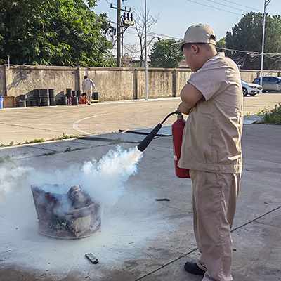 此外,本次消防安全綜合演練也對員工進行了滅火器的操作教學,并進行了實戰演練。